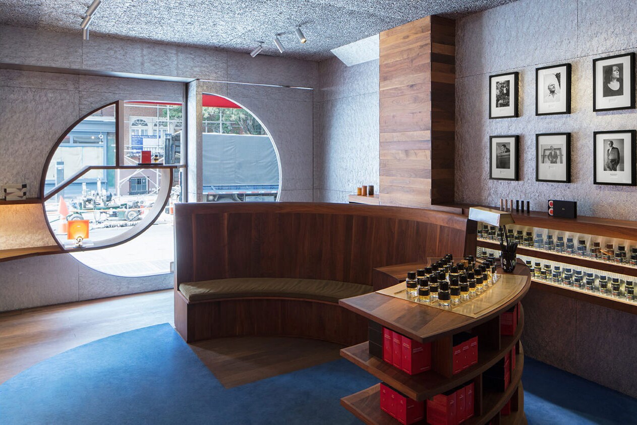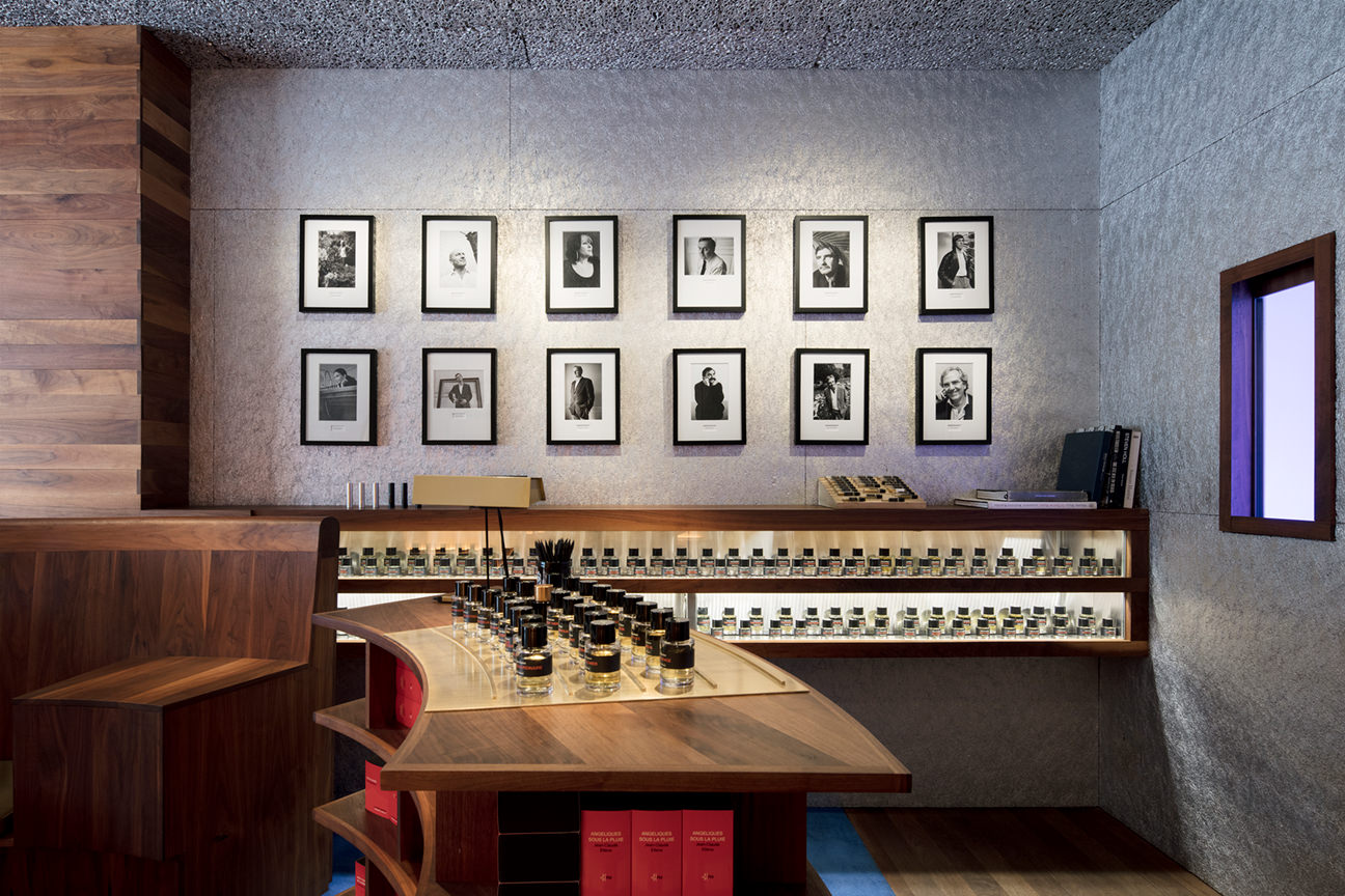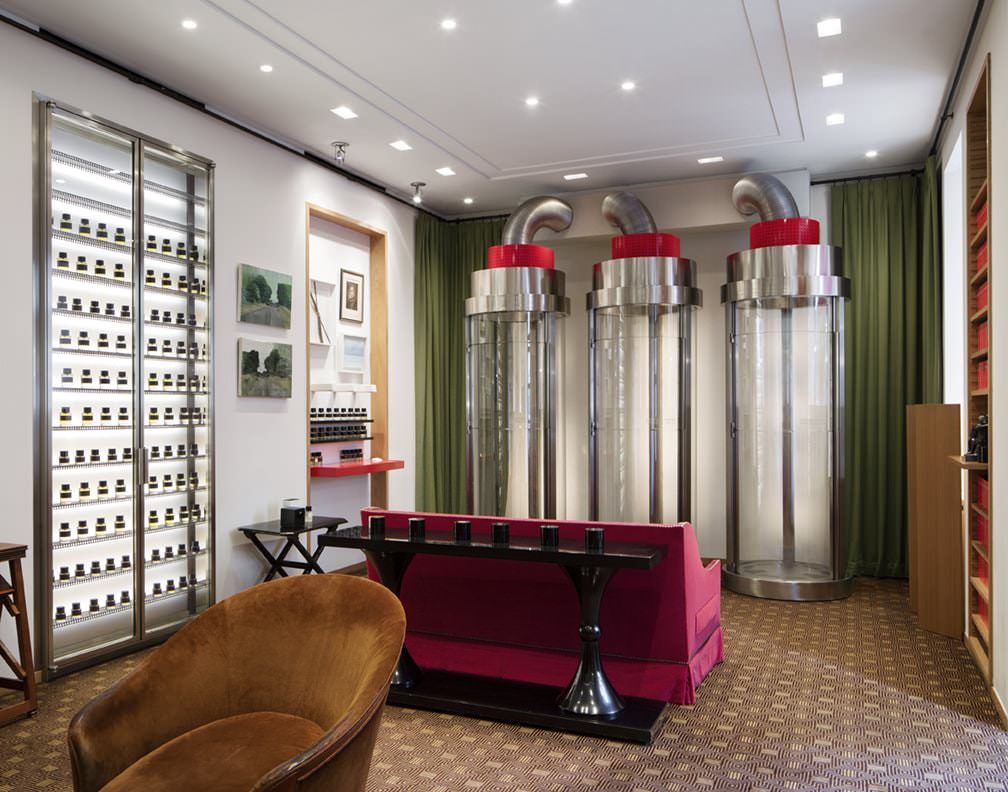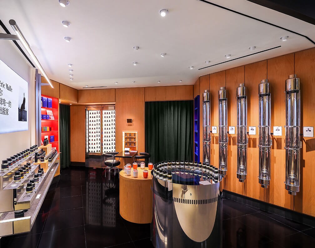 Каждый из бутиков Фредерика Маля уникален, но все они имеют общие характерные черты. Зачастую Фредерик Маль сам разрабатывает их интерьеры, сочетая уютную домашнюю атмосферу со строгим дизайном парфюмерной лаборатории. Фирменной особенностью бутиков служат парфюмерные колонны и холодильные шкафы для хранения ароматов.